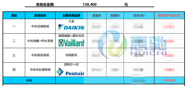舒適節(jié)能系統(tǒng)配置表