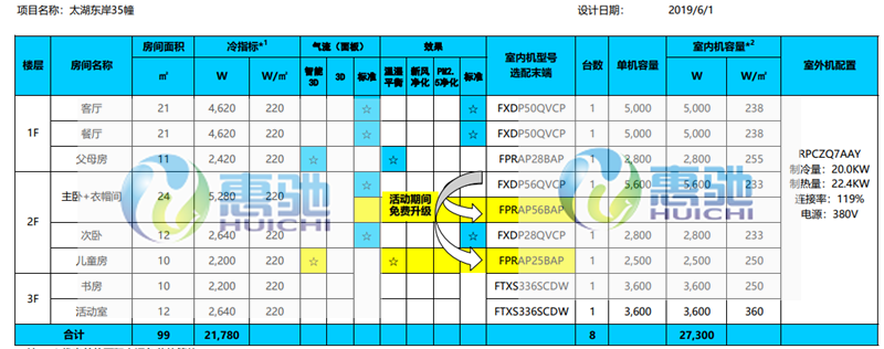 空調(diào)系統(tǒng)配置表