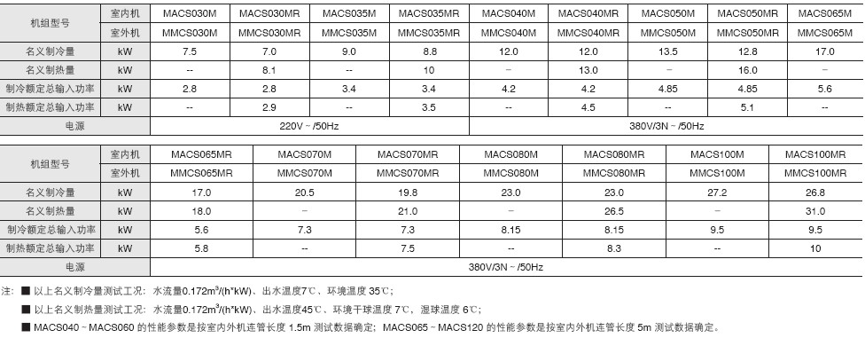小型風冷冷水/熱泵機組分體系列 MACS-M/S