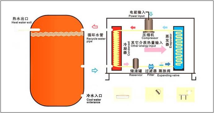 空氣能熱泵熱水器也稱“空氣源熱泵熱水器”“熱泵熱水器”“空氣能熱水器” 等。空氣能熱泵熱水器(空氣源熱泵熱水器)中的熱泵能把空氣中的低溫熱能吸收進來,經過壓縮機壓縮后轉化為高溫熱能,加熱水溫。這種熱水器(空氣源熱泵熱水器)具有高效節(jié)能的特點,其耗電量是同等容量電熱水器的1/4,是燃氣熱水器的1/3?諝饽軣岜脽崴鳎ǹ諝庠礋岜脽崴鳎┑某跗谕顿Y是煤氣、天然氣、電熱水器的三至五倍,但其日常運行成本較低。