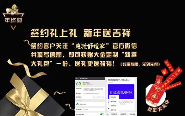 簽約客戶關注“惠馳舒適家”官方微信公眾號,并填寫信息,即可獲贈大金定制的“新春大禮包”一份,送禮更送祝福!