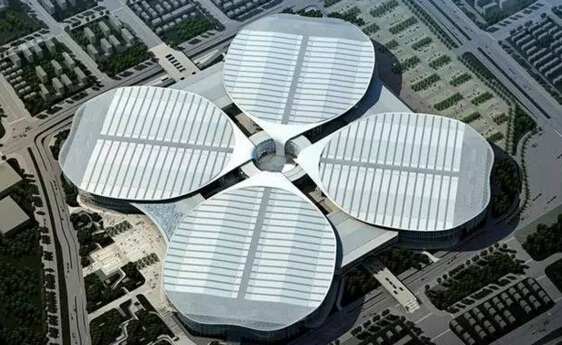 國家會(huì)展中心(上海)位于上海市虹橋商務(wù)區(qū)核心區(qū),緊鄰虹橋交通樞紐,由展廳、商業(yè)用房、酒店、辦公用房組成,平面為四葉草形狀,設(shè)計(jì)效果見圖1,總建筑面積147萬㎡。